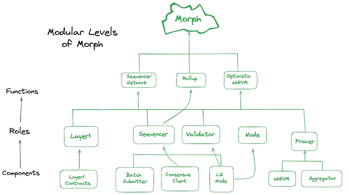 Morph exemplifies the application of modular design principles within the Layer 2 (L2) solutions. By adopting a modular architecture, Morph offers unparalleled flexibility, allowing developers to tailor their apps by integrating only the necessary modules. This strategic approach not only optimizes performance by reducing complexity but also ensures that the platform can swiftly adapt to technological advancements without overhauling the entire system. Morph's dedication to modular design sets it apart from conventional L2 solutions, fostering an environment where developers can unleash their creativity to build more efficient, scalable, and innovative decentralized applications (dApps).