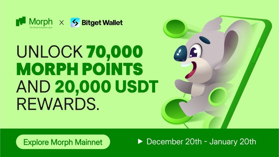 Mark your calendars! From Dec 20 to Jan 20, swap and trade on BitgetWallet to earn from the 70,000 Morph Points and 20,000 USDT prize pool! Make every trade count this season!