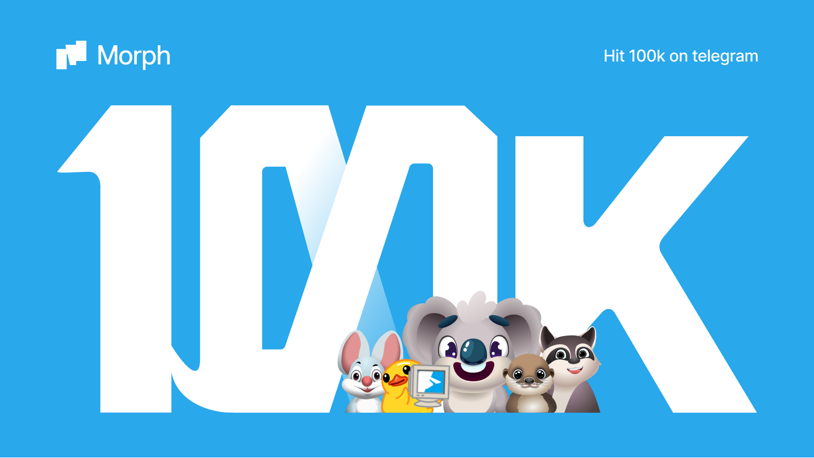 Lets end it off with more amazing news from our community. We have hit 100,000 Telegram users! This milestone was hit in the same day as the 200,000 milestone for Discord, what a day right? The Morph Community has been killing it! Lets keep it up and keep rolling.
