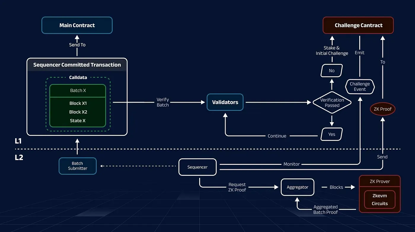 If the verification fails, validators will trigger a challenge process on L1 to prevent the incorrect states from being confirmed.